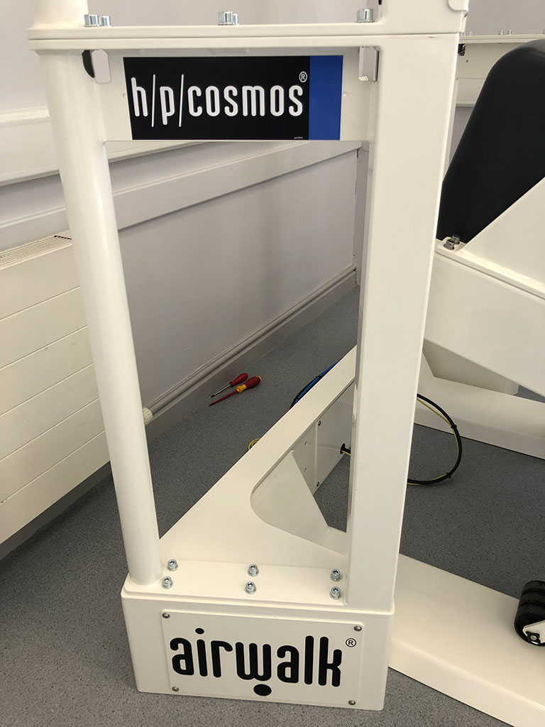 Furthermore, the addition of the h/p/cosmos Airwalk enables gait training and functional training to be performed very early on. This is hugely beneficial when a subject suffers a sports injury. The goal of the Airwalk is to bring the subject’s movements back to a normal rhythm. And, with the Airwalk, this is achievable even if the subject’s joints are not able to be loaded just yet.