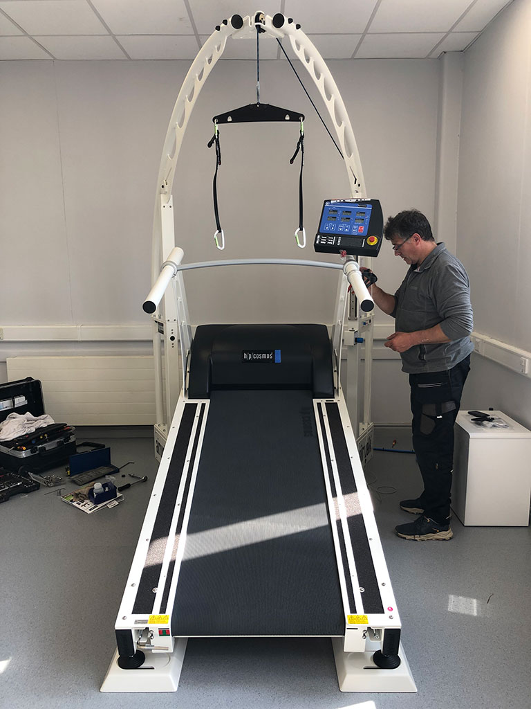 This medical treadmill is suitable and certified for medical applications and testing. We made a recommendation for this solution as part of the tender bid process because it fulfils many requirements. In addition, we also made a recommendation for the h/p/cosmos Airwalk unweighting system. This will help to meet as many of the demands of the new course as possible.